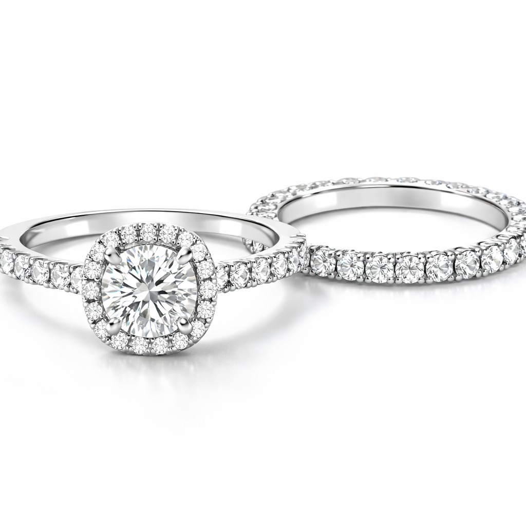 Prabangus Moisanito žiedų komplektas | ETERNITY SET