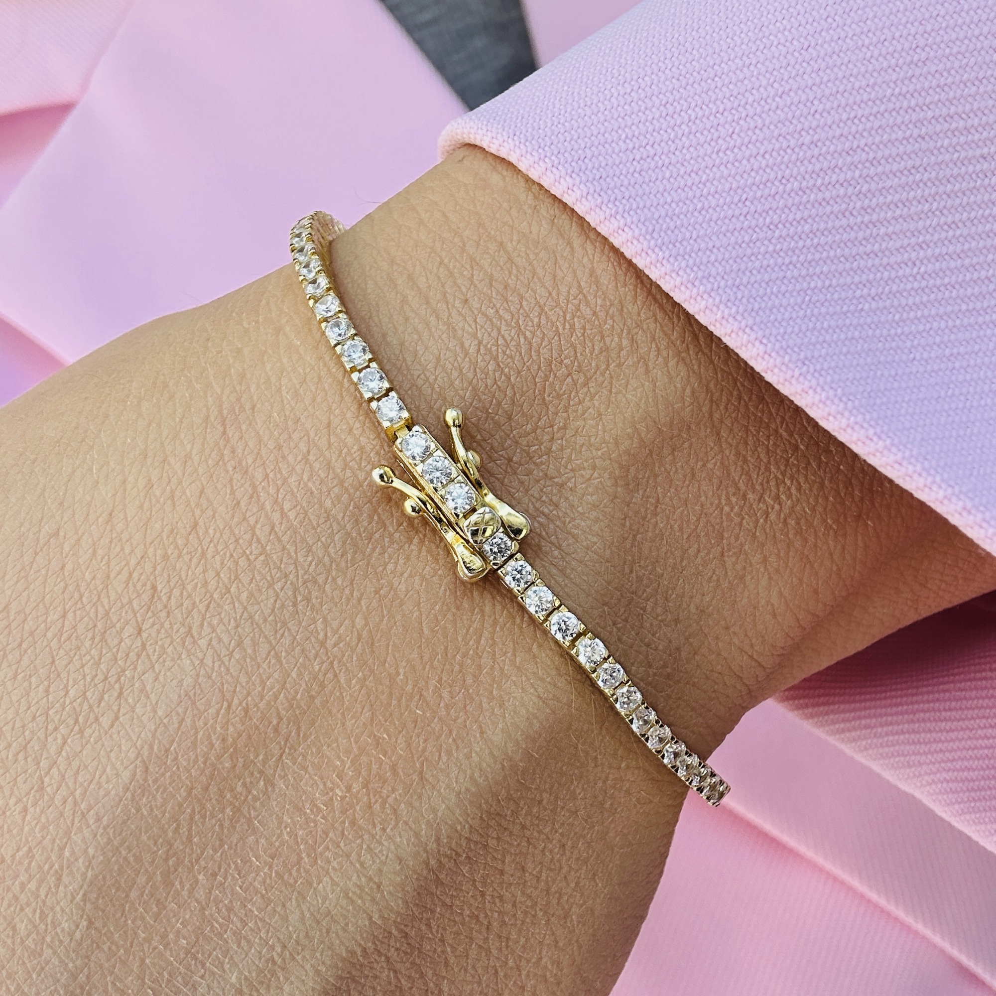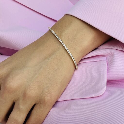 Dėl klasikinio „teniso“ dizaino ši apyrankė puikiai tinka tiek kasdienai, tiek ypatingoms progoms – tai universalus papuošalas, kuris papildys bet kurį stilių.