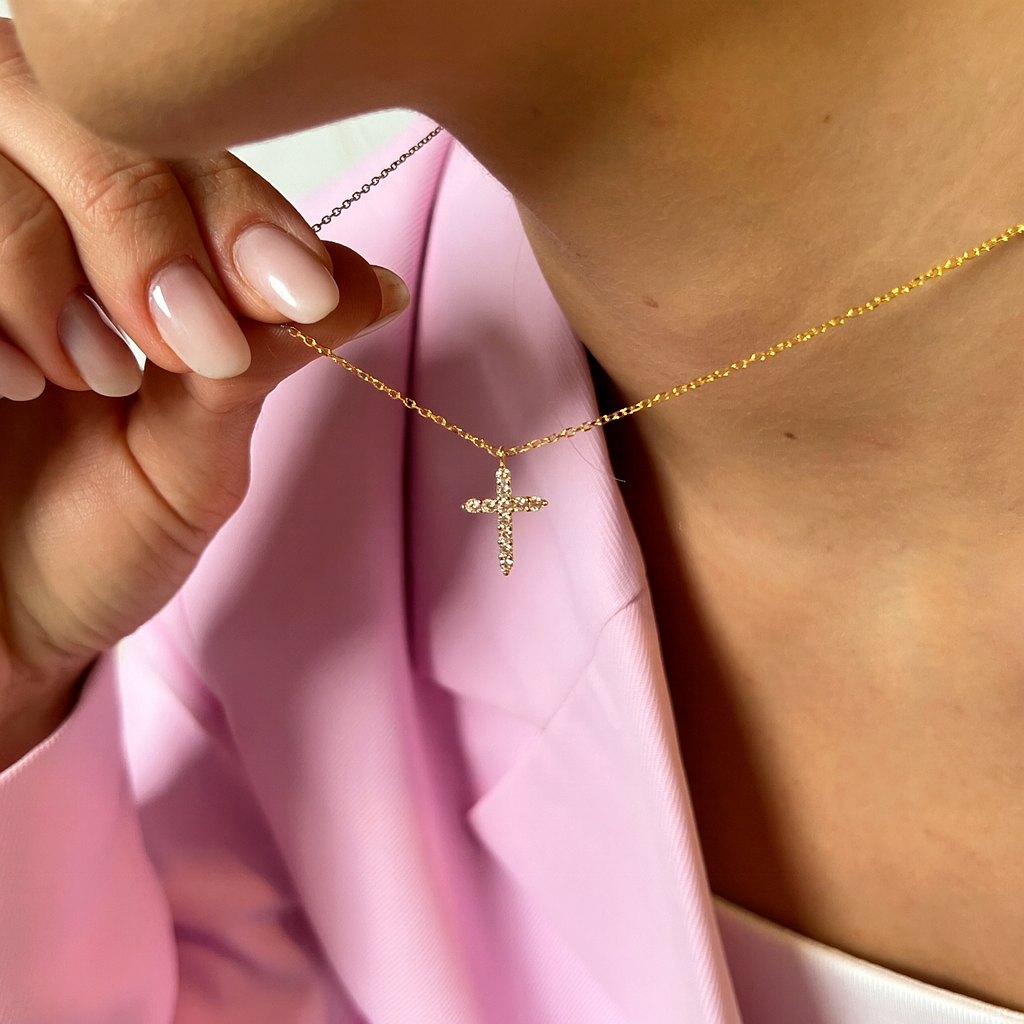 Sidabrinis kryželis su cirkonio kristalais (auksuotas) | PRINCESS