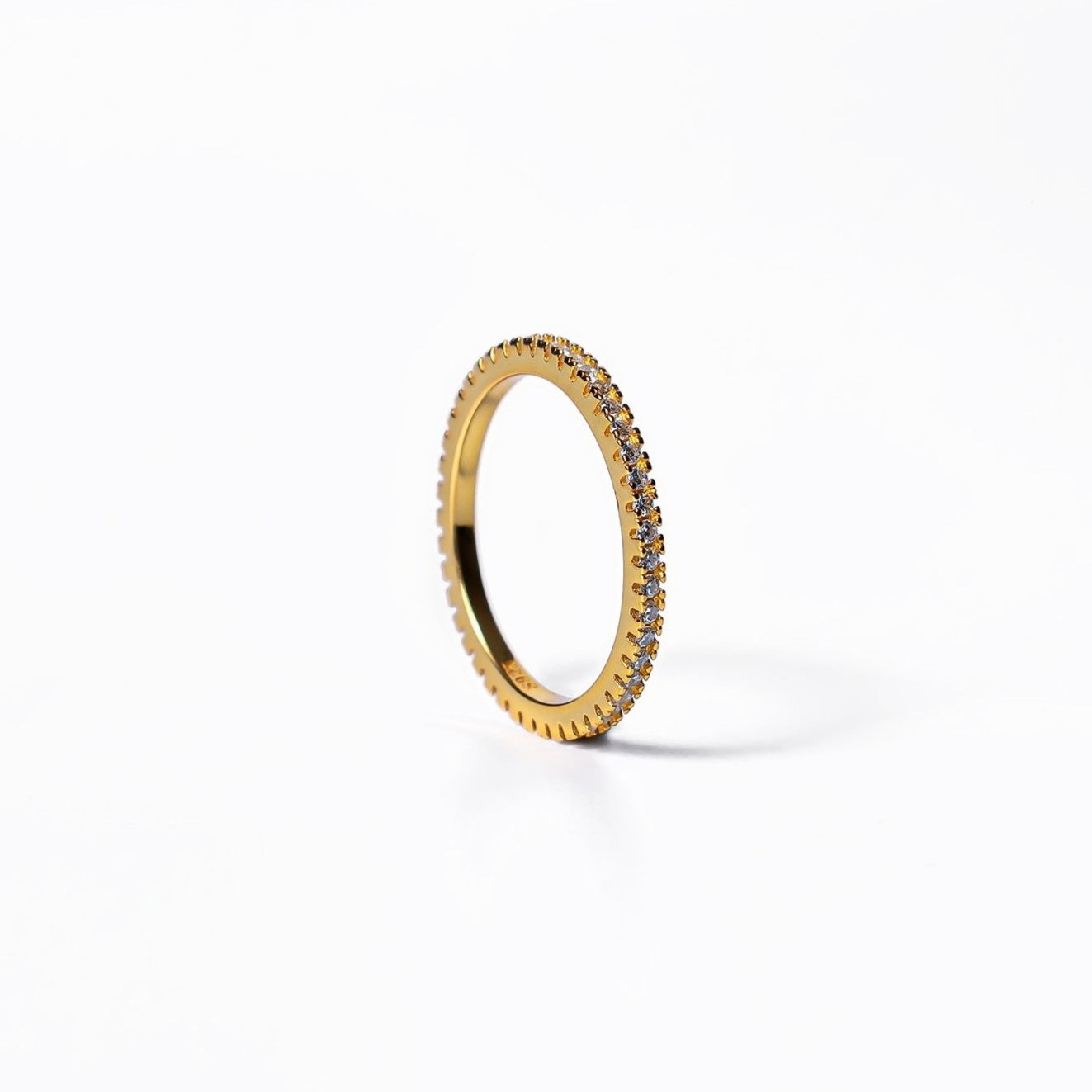 - Cirkonio kristalai išdėlioti aplink visą žiedą.