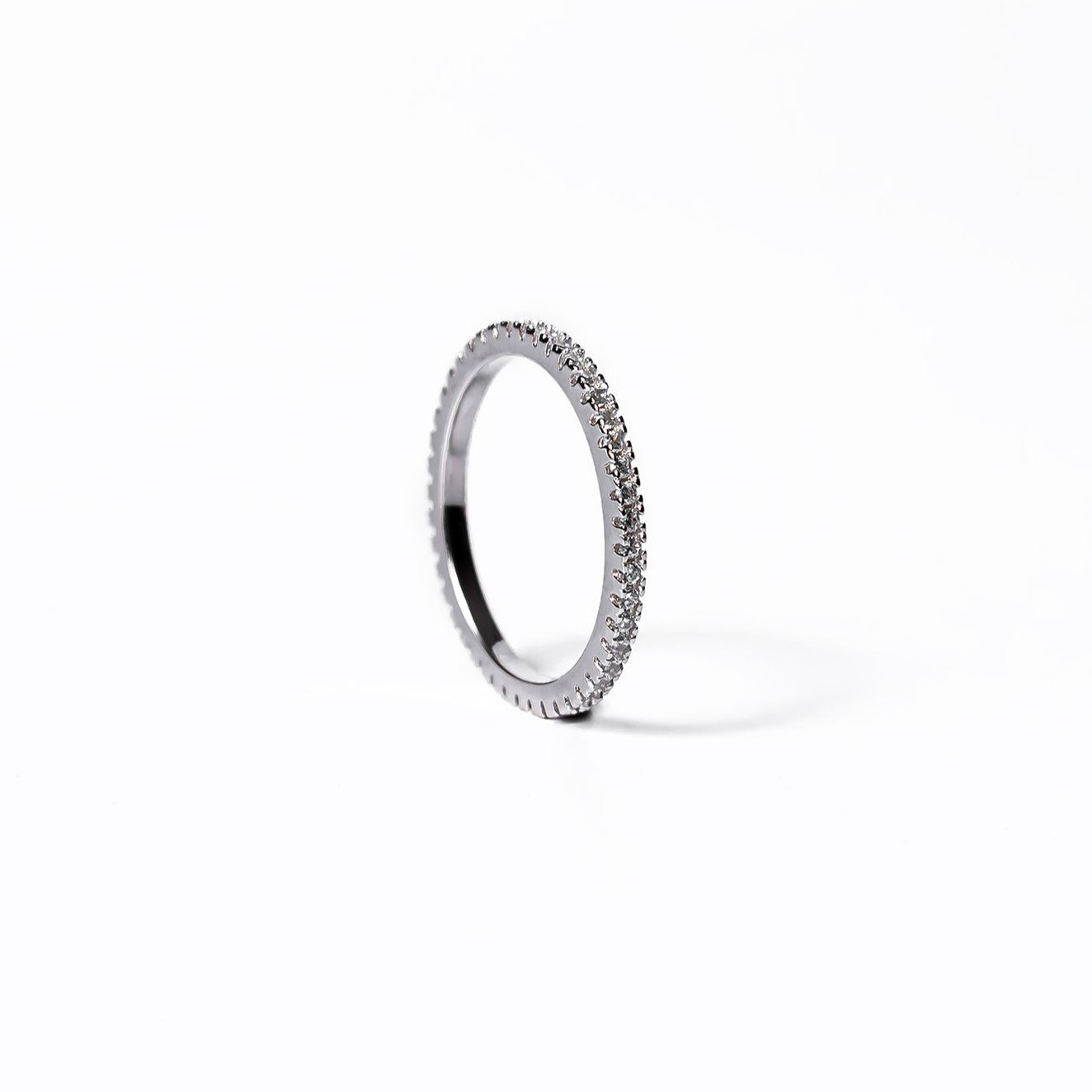 - Cirkonio kristalai išdėlioti aplink visą žiedą.